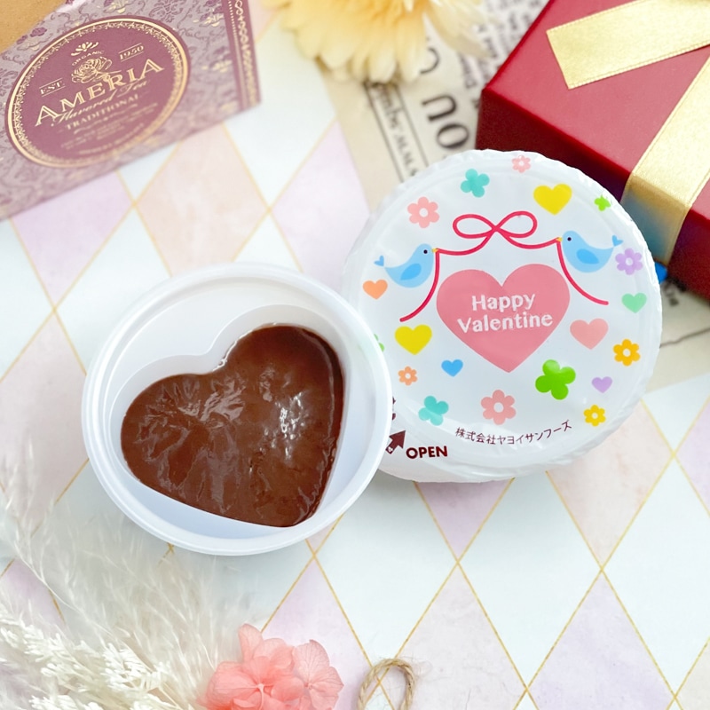 バレンタインにぴったりなハート型の容器に入ったチョコレート風味のプリンです。