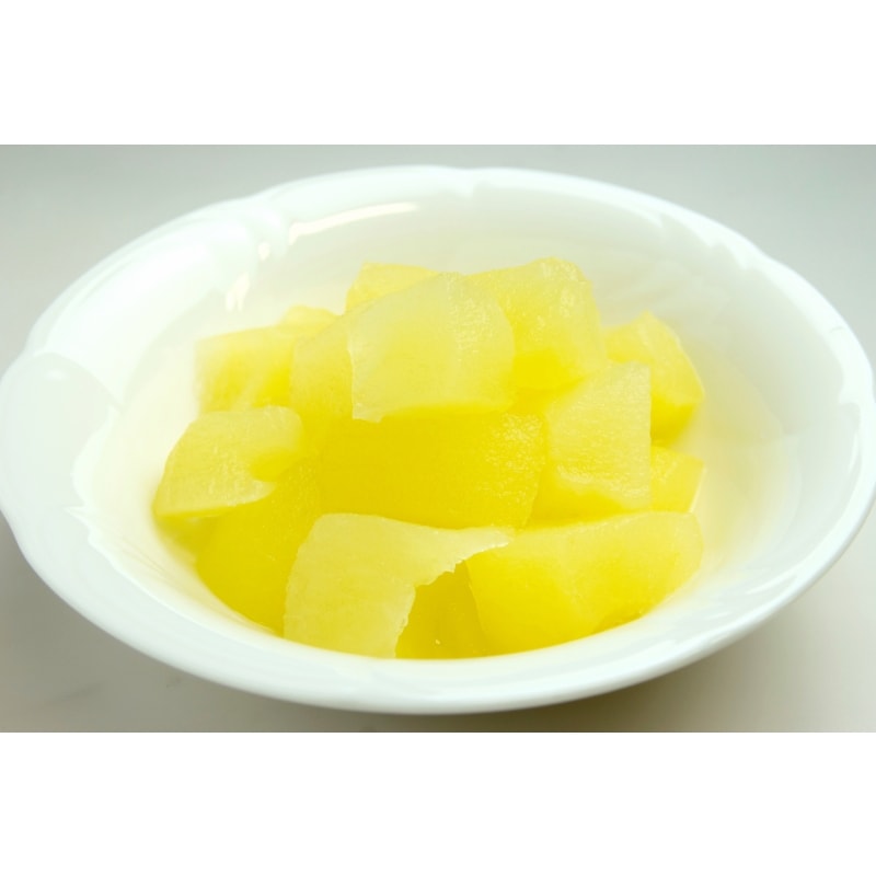 皮をむき、芯を取ったりんごをダイス状に切断しシラップ漬けにしました。