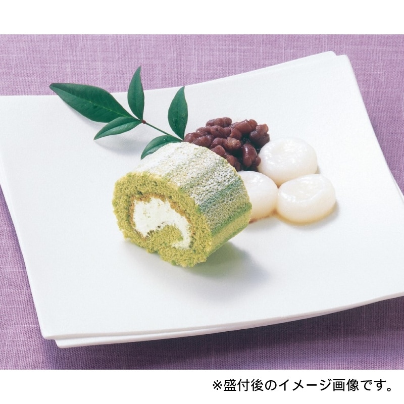 抹茶風味のスポンジに緑色のライン模様をつけ、抹茶クリームを包んで巻き上げました。