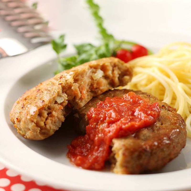 野菜(たまねぎ、にんじん、えだまめ、根深ねぎ)、粒状植物性たん白(国内製造)、鶏肉、つなぎ(パン粉、小麦粉、粉末状植物性たん白)、豆腐、牛脂、砂糖、みりん、おろししょうが、食塩、かつお節エキス/調味料(アミノ酸等)、リン酸塩(Na)、豆腐用凝固剤、(一部に小麦・牛肉・大豆・鶏肉を含む)