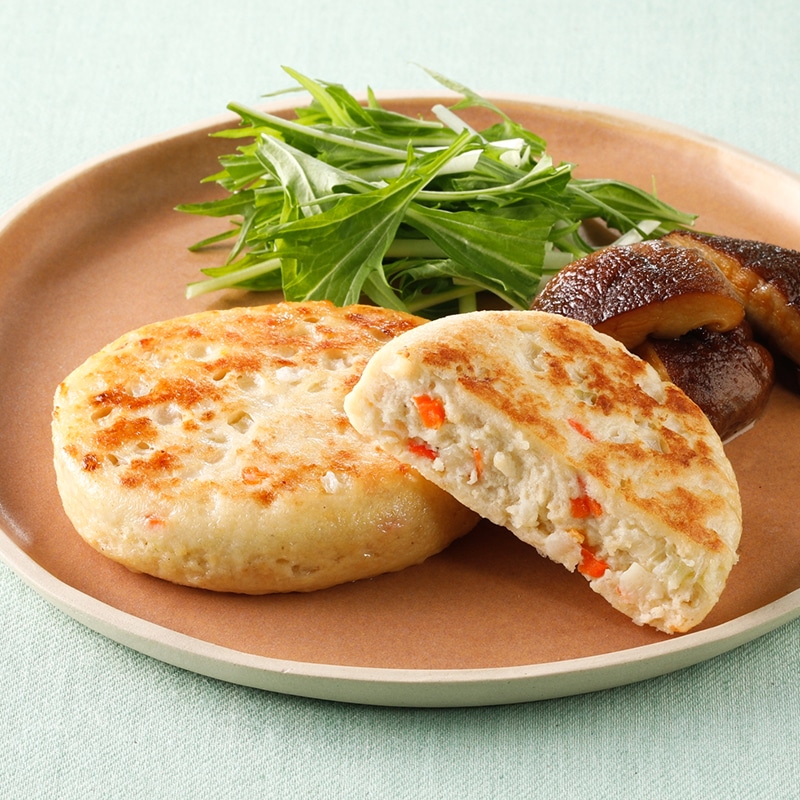 国産の玉ねぎとにんじんを練り込んだ豆腐バーグです。